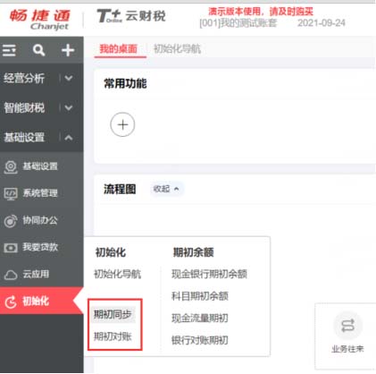 3、點(diǎn)擊初始化——期初對(duì)賬
