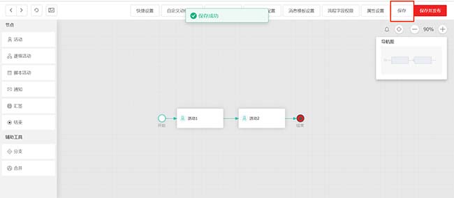 工作流設(shè)計(jì)中保存功能會將審批流的設(shè)計(jì)界面記錄為最新的流程。保存會對“更新時間”生效,但是該“保存”操作并不會更新流程版本,意味著單據(jù)即使在保存后發(fā)起,依然走的是歷史的版本。