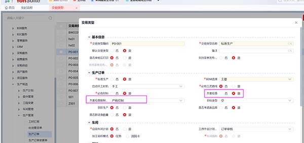 找到生產(chǎn)訂單的交易類型,點(diǎn)擊編輯,然后把截圖中的屬性設(shè)置下;齊套檢查為是; 檢查限制為嚴(yán)格控制;