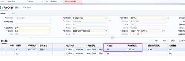 把材料信息中的“齊套”,”齊套檢查點(diǎn)”設(shè)置下,按截圖設(shè)置;