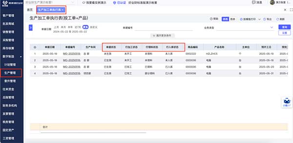 全程追蹤可視化:“生產(chǎn)管理以銷(xiāo)定產(chǎn)全程追蹤表”功能,能實(shí)時(shí)顯示從銷(xiāo)售訂單到生產(chǎn)任務(wù)的執(zhí)行狀態(tài),包括排產(chǎn)進(jìn)度、物料領(lǐng)用、工序完工和入庫(kù)情況,確保信息透明。