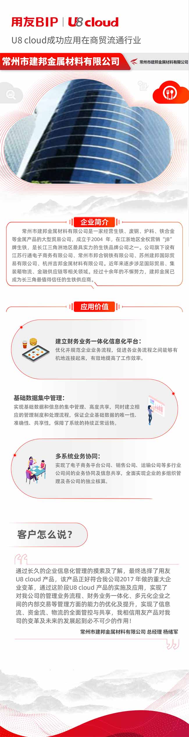 > 用友U8 cloud助力建邦金屬企業(yè)全面信息化集中管控