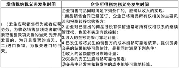 增值稅和企業(yè)所得稅是兩個不同的稅種,其收入確認在時間是存在差異的。一般規(guī)定如下: