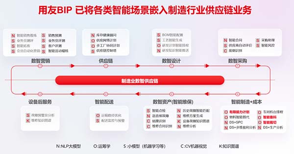 YonBIP數(shù)智供應(yīng)鏈已經(jīng)把各類智能體有機(jī)嵌入制造行業(yè)供應(yīng)鏈各價值鏈中。這些智能體綜合應(yīng)用了NLP大模型、運籌學(xué)的能力,小模型機(jī)器學(xué)習(xí)的能力、機(jī)器視覺能力、知識圖譜的能力。