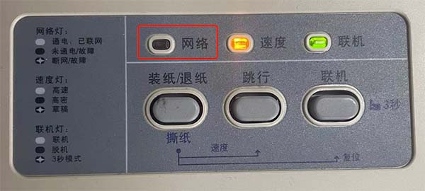 1)打印機(jī)開機(jī)(此時(shí)機(jī)身上【網(wǎng)絡(luò)】燈為紅色閃爍狀態(tài),表示打印機(jī)未聯(lián)網(wǎng))