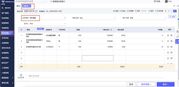材料調(diào)撥與委外發(fā)料,材料去向一清二楚:從的倉(cāng)庫(kù)(比如廣州辦公室)把材料調(diào)撥到委外廠,用【庫(kù)存核算】-【調(diào)撥單】,這樣材料的去向就很清楚。委外廠領(lǐng)用材料時(shí),用【庫(kù)存核算】-【委外發(fā)料單】記錄,系統(tǒng)會(huì)自動(dòng)扣減委外倉(cāng)的材料庫(kù)存,還能追蹤在途物資。