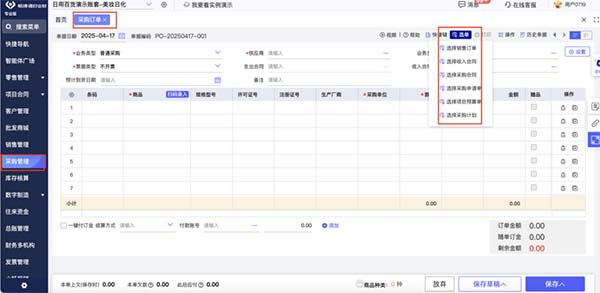 采購(gòu)訂單與進(jìn)貨,采購(gòu)流程更順暢:根據(jù)齊套分析或庫(kù)存預(yù)警,在【采購(gòu)管理】-【采購(gòu)訂單】里向供應(yīng)商下單。材料到貨后,通過(guò)【采購(gòu)管理】-【進(jìn)貨單】驗(yàn)收入庫(kù),可以選直接入自有倉(cāng)或委外倉(cāng)。系統(tǒng)會(huì)按照【移動(dòng)平均法】自動(dòng)算和更新材料的庫(kù)存成本。