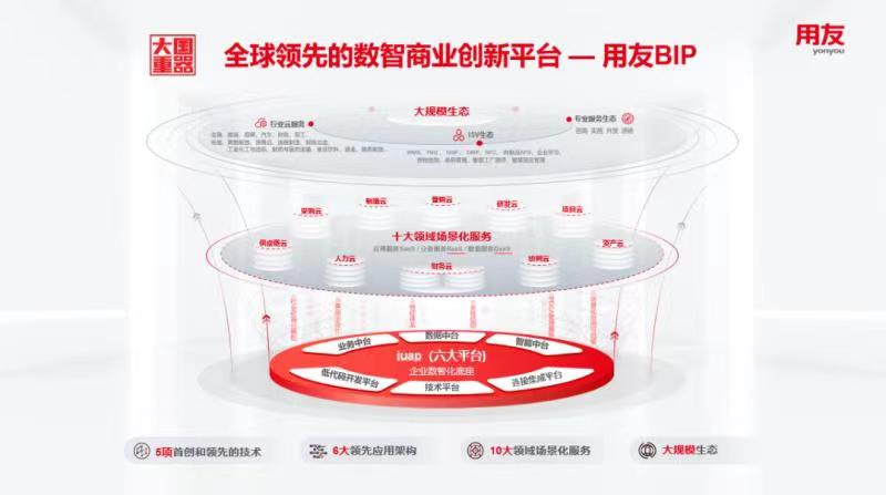 作為企業(yè)數(shù)智化云服務(wù)與軟件龍頭廠商,用友自1988年創(chuàng)立以來,一直專注于信息技術(shù)在企業(yè)與公共組織應(yīng)用與服務(wù)領(lǐng)域,先后發(fā)展成為中國最大的財(cái)務(wù)軟件提供商、亞太最大全球前10的ERP軟件提供商,并累計(jì)服務(wù)了上萬家大型企業(yè)信息化。近年來,用友戰(zhàn)略研發(fā)推出了全新一代服務(wù)企業(yè)數(shù)智化的商業(yè)創(chuàng)新平臺(tái)—用友BIP,已先后服務(wù)了海內(nèi)外不同規(guī)模的眾多行業(yè)領(lǐng)先企業(yè)的數(shù)智商業(yè)創(chuàng)新,被重要央媒譽(yù)為企業(yè)數(shù)智化的“大國重器”。