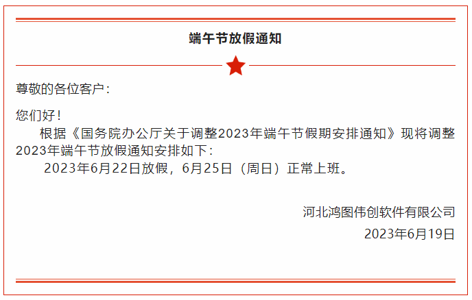 【假期】2023年鴻圖偉創(chuàng)-用友軟件端午節(jié)放假及值班安排