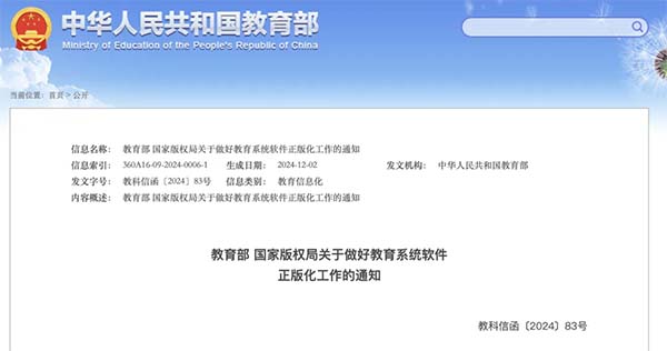 近日,教育部、國家版權(quán)局發(fā)布通知,為貫徹落實(shí)《國務(wù)院辦公廳關(guān)于印發(fā)政府機(jī)關(guān)使用正版軟件管理辦法的通知》(國辦發(fā)〔2013〕88號(hào)),進(jìn)一步完善教育系統(tǒng)軟件正版化工作長(zhǎng)效機(jī)制,推進(jìn)教育系統(tǒng)軟件正版化工作規(guī)范化、常態(tài)化、制度化。