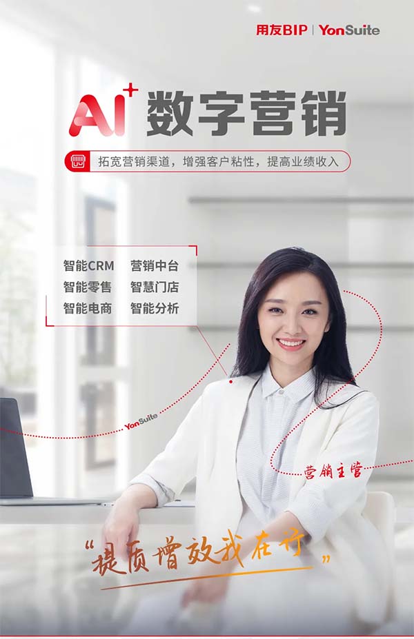 用友YonSuite AI + 數(shù)字營(yíng)銷為業(yè)績(jī)?cè)鲩L(zhǎng)提供有力支持。通過智能 CRM、智能零售、智能電商、智能中臺(tái)、智能門店、智能分析等應(yīng)用,洞察客戶需求,提升客戶粘性,拓寬營(yíng)銷通路,提升贏單率。