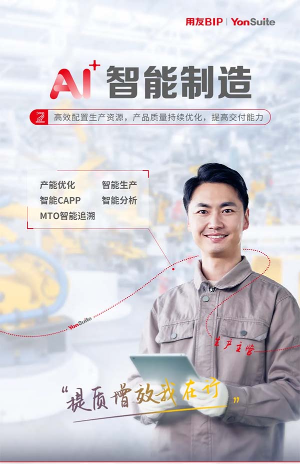 用友 YonSuite AI + 智能制造在優(yōu)化資源配置和質(zhì)量提升問題發(fā)揮重要作用。通過產(chǎn)能優(yōu)化、智能生產(chǎn)、MTO 智能追溯、智能分析、智能CAPP等落地應(yīng)用,助力制造企業(yè)提質(zhì)增效, 提高交付能力。