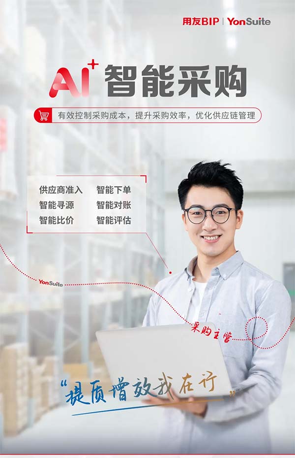 用友YonSuite,通過 AI + 智能采購(gòu),實(shí)現(xiàn)成本控制與供應(yīng)保障,提供智能尋源、智能下單及對(duì)賬等服務(wù),控本提效,優(yōu)化供應(yīng)鏈管理。