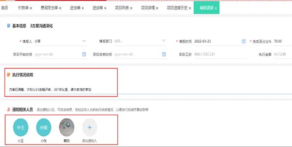 項(xiàng)目管理的成功離不開(kāi)團(tuán)隊(duì)的協(xié)同合作,ERP系統(tǒng)為項(xiàng)目團(tuán)隊(duì)成員提供一個(gè)統(tǒng)一的信息平臺(tái),用于填寫項(xiàng)目相關(guān)信息,如任務(wù)進(jìn)度、問(wèn)題反饋、文檔資料等。共享項(xiàng)目信息平臺(tái)的建立,使得團(tuán)隊(duì)成員間的溝通成本大幅降低,無(wú)論是項(xiàng)目進(jìn)度匯報(bào),還是問(wèn)題反饋,都能在第一時(shí)間得到響應(yīng)。同時(shí),系統(tǒng)能設(shè)置消息預(yù)警,實(shí)現(xiàn)項(xiàng)目執(zhí)行過(guò)程中信息協(xié)同,確保按計(jì)劃施工。