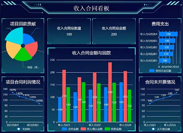 在項(xiàng)目管理的各個(gè)階段,管理層需要做出眾多關(guān)鍵決策,而這些決策離不開(kāi)準(zhǔn)確、及時(shí)的數(shù)據(jù)支持。ERP系統(tǒng)通過(guò)財(cái)務(wù)參謀、項(xiàng)目看板、數(shù)據(jù)大屏等功能,將海量數(shù)據(jù)轉(zhuǎn)化為有價(jià)值的項(xiàng)目數(shù)據(jù)洞察,幫助項(xiàng)目經(jīng)理分析項(xiàng)目數(shù)據(jù),識(shí)別趨勢(shì)和問(wèn)題,從而做出更加科學(xué)的決策。