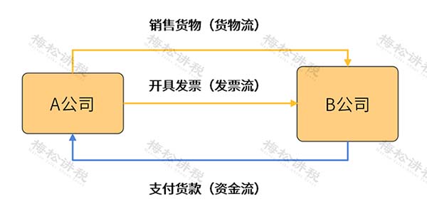 簡(jiǎn)單來(lái)說(shuō),“三流一致”指的是發(fā)票流、資金流和貨物流的統(tǒng)一,如圖所示: