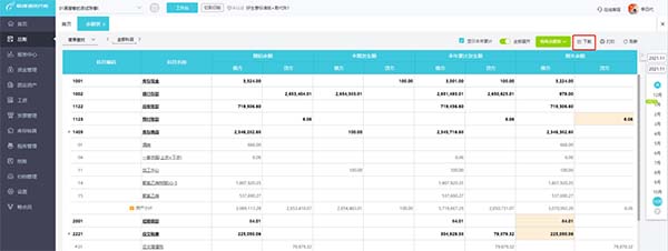 點(diǎn)擊【下載】可以將現(xiàn)有模式的余額表下載至本地。