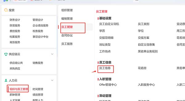 2.已啟用人力云:在人力云 > 組織與員工管理 > 員工管理 > 員工信息 員工信息 中新增員工后,用戶管理中對應(yīng)生成用戶,新員工可使用賬號登錄;