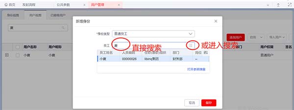 2、已啟用人力云:人力云 > 組織與員工管理 > 員工管理 > 員工信息 > 員工信息 中新增員工后直接到用戶管理中新增用戶,關(guān)聯(lián)員工身份;
