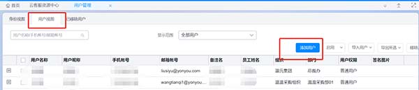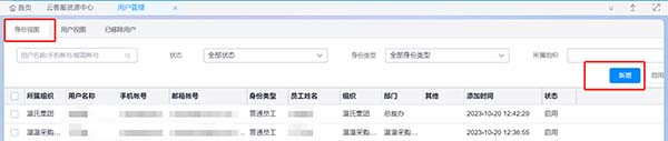 Step1:在 用戶管理中進入用戶視圖,鼠標放置目標行,點擊新增身份;