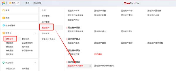1、【財務云-財務會計-固定資產(chǎn)-固定資產(chǎn)查詢】節(jié)點,在卡片折舊信息點擊折舊預測。