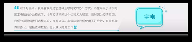 “對于用友好會計,我最喜歡的是它這種互聯(lián)網(wǎng)化的辦公方式,不在局限于線下的固定電腦的辦公模式了,疫情期間這個優(yōu)勢尤為明顯,當(dāng)時因為疫情原因,我們公司提倡我們遠(yuǎn)程辦公,在家辦公。非常慶幸我們使用了好會計,在家也能做賬辦公,包括查詢數(shù)據(jù),也沒耽誤財務(wù)工作。”