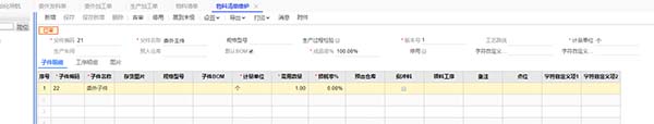 1.設(shè)置自制加工對(duì)應(yīng)的物料清單,此時(shí)組件由子件組成