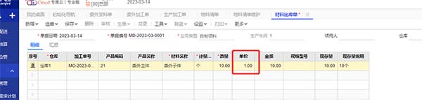 7.將委外加工單生單生成發(fā)料單,此時(shí)發(fā)出的材料為產(chǎn)成品主件本身。