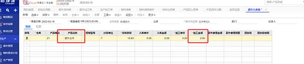 8.發(fā)料完成以后填制委外入庫單,并將對(duì)應(yīng)的加工費(fèi)錄入