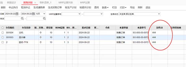 2、檢查拼接(MRP運算單、采購計劃、請購單、采購訂單)明細,(字符公用自定義項3名稱(父件22));